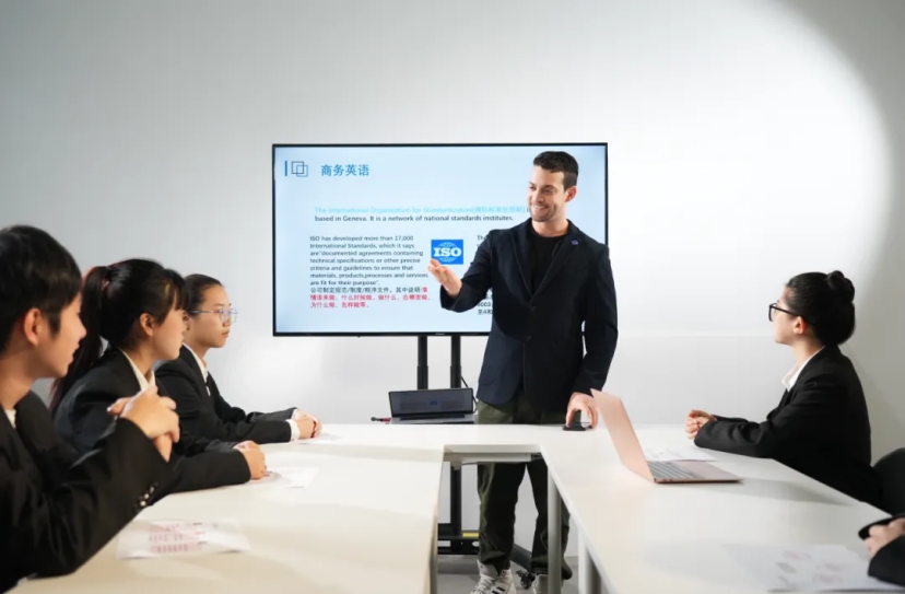 在课程重构上,跳出传统语言课程线性框架,按 “基础能力 — 专业技能 — 综合应用” 阶梯式逻辑重构课程体系。基础层强化英语语言功底,核心层增设《跨文化商务交际》《商务英语听说》等情景化模块,拓展层融入国际商务、市场营销、文旅策划等跨学科内容,形成 “语言能力 + 专业素养 + 创新思维” 三位一体的课程矩阵。课程内容紧密对接行业需求,整合企业真实案例、岗位能力模型,将职场沟通、商务谈判、项目策划等真实任务转化为教学内容,例如在《跨文化商务交际》课程中,引入外贸企业跨境合作案例,让学生在模拟商务场景中锤炼语言应用与跨文化沟通能力。
