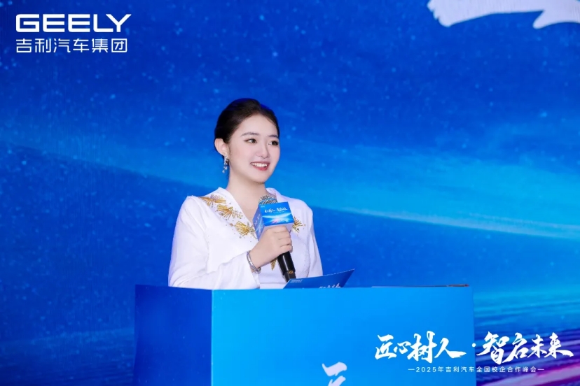△入职到吉利汽车集团的郭温婷同学在校企合作峰会上进行发言