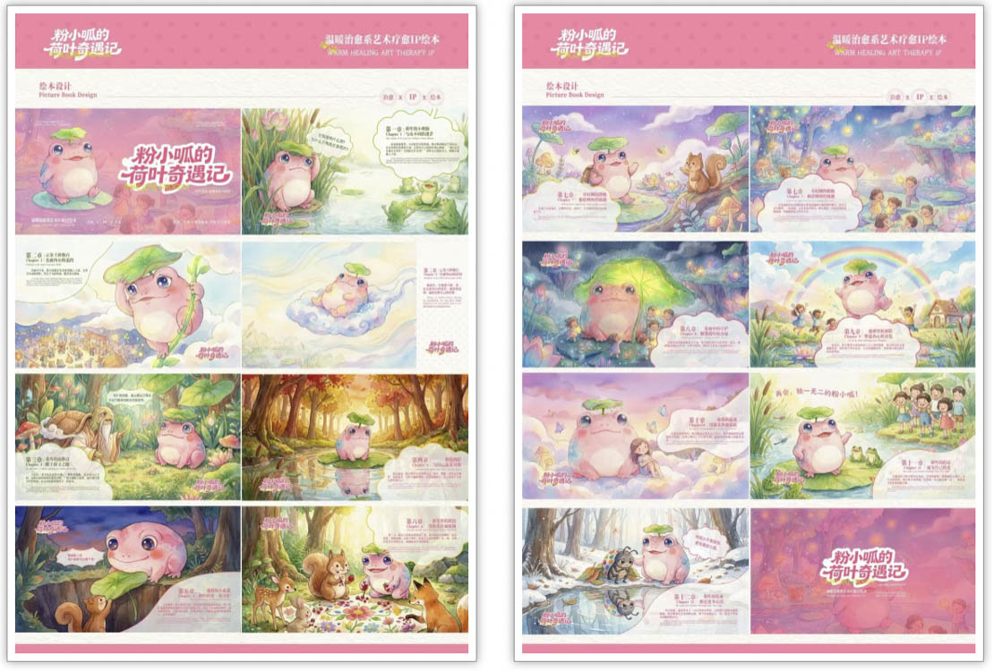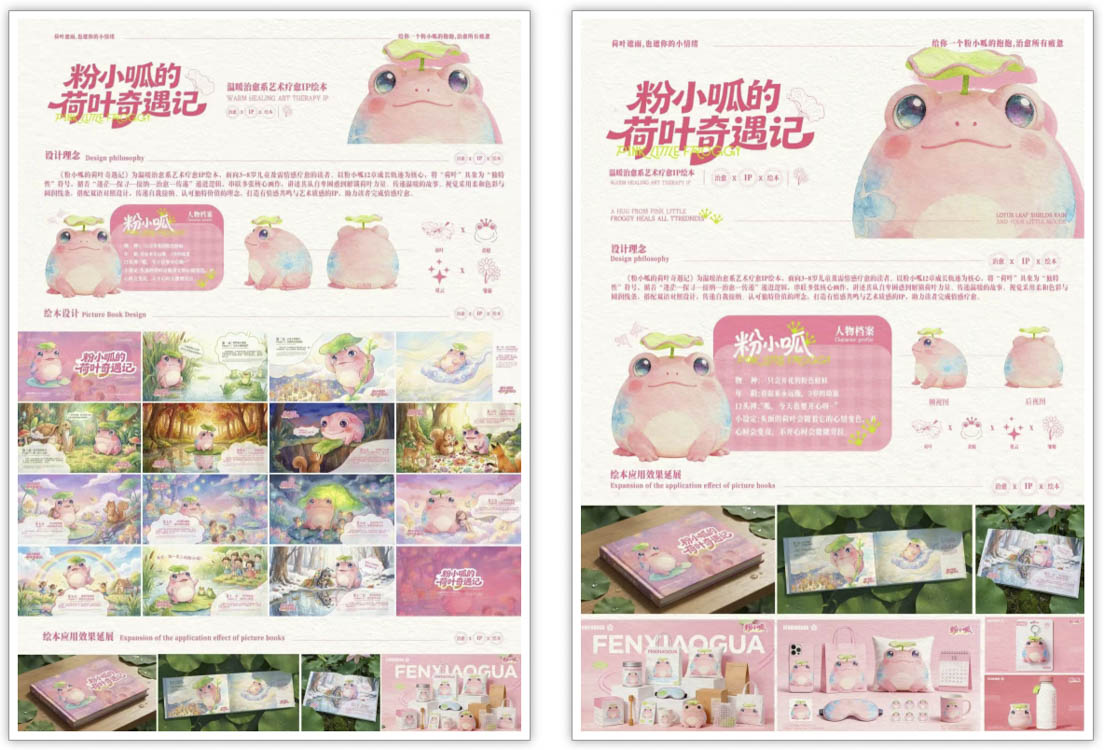△ 三等奖作品《<粉小呱的荷叶奇遇记>治愈系 IP 绘本设计》