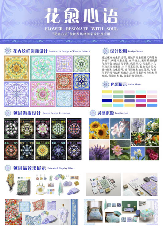 △ 二等奖作品《“花愈心语”曼陀罗风格图案设计及应用》