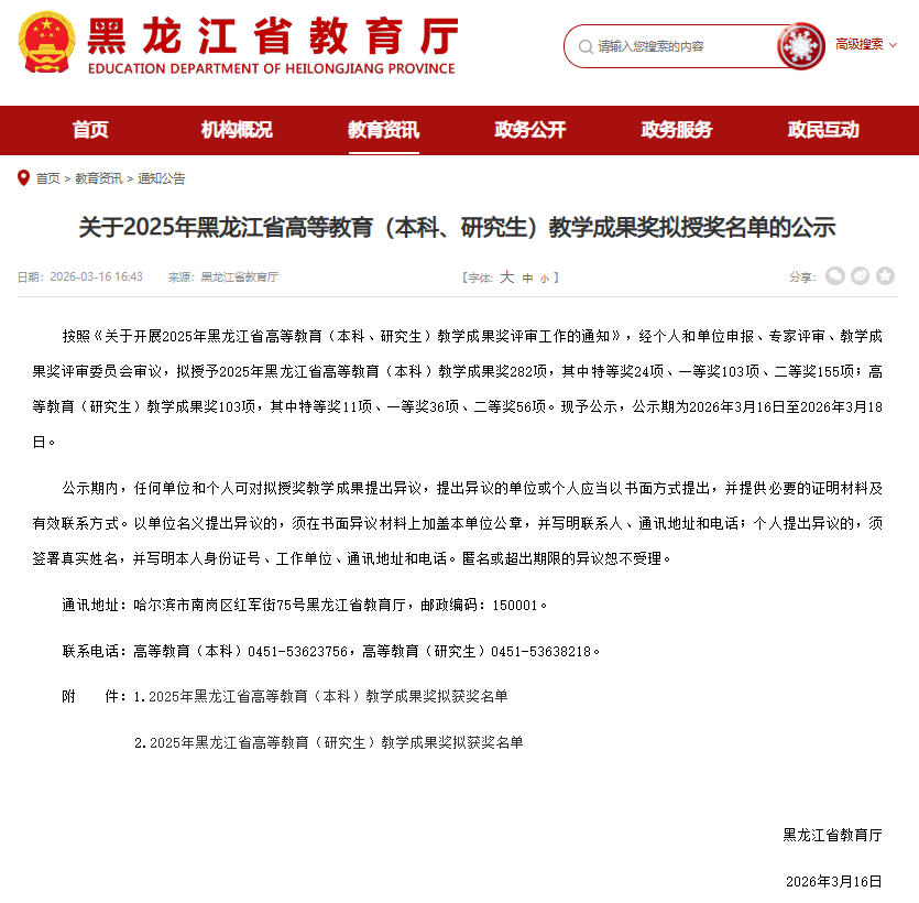 学校将以此次获奖为契机,充分发挥教学成果奖的示范引领作用,持续完善应用型人才培养体系,推动教育教学改革向更深层次、更高水平迈进,为龙江全面振兴全方位振兴输送更多高素质应用型人才。