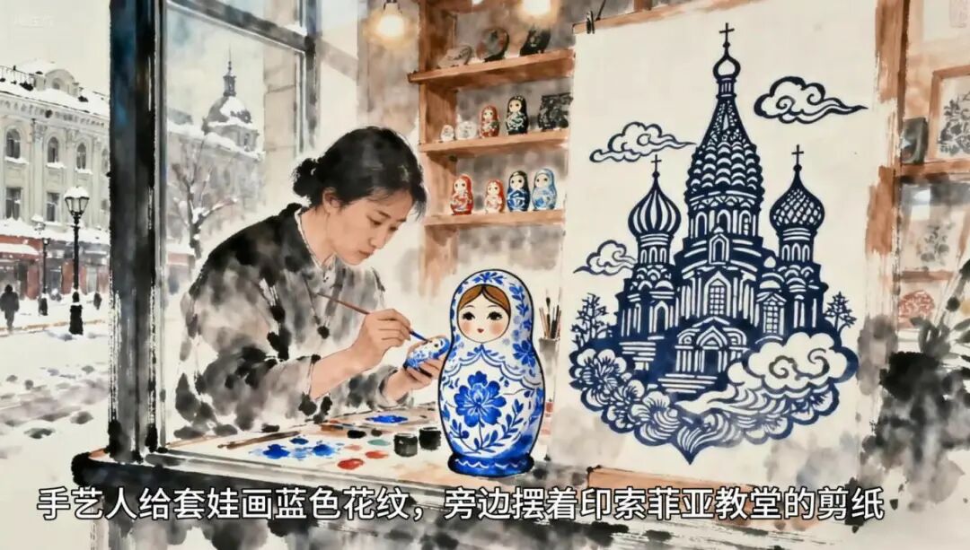 △ 学生组 二等奖获奖作品《中俄文化“熊”融之美》《唐韵俄风·执扇相契》